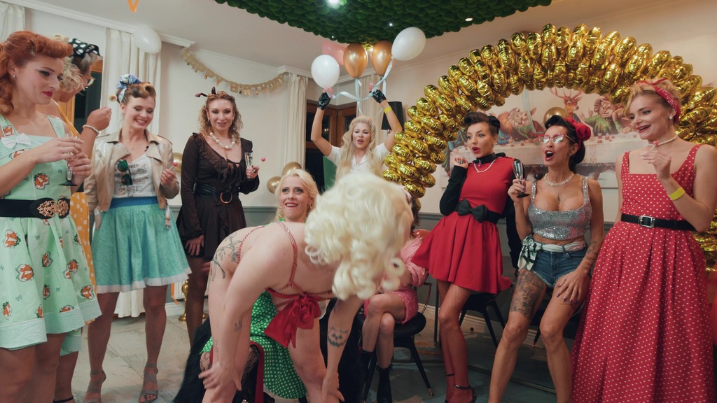Incredible anal extreme whore Brittany Bardot meets with friends Julia North, Maya Rose, Kathy Deep, Fibi Euro, Alexa Throat and others for a glamorous birthday party. These anal whores know everything about anal and erotic pissing and squirting. No hole stays untouched and huge amounts of female urine are distributed. Happy birthday, Brittany. See also our Double Anal Rating. Title full project Rockabilly BB 45! Brittany Bardot’s Birthday party WET